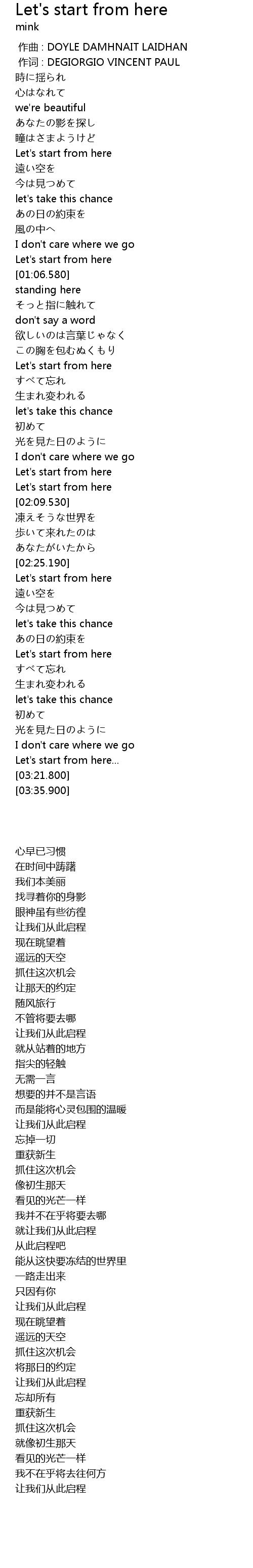 | [03:02.790] | 让我们从此启程 |