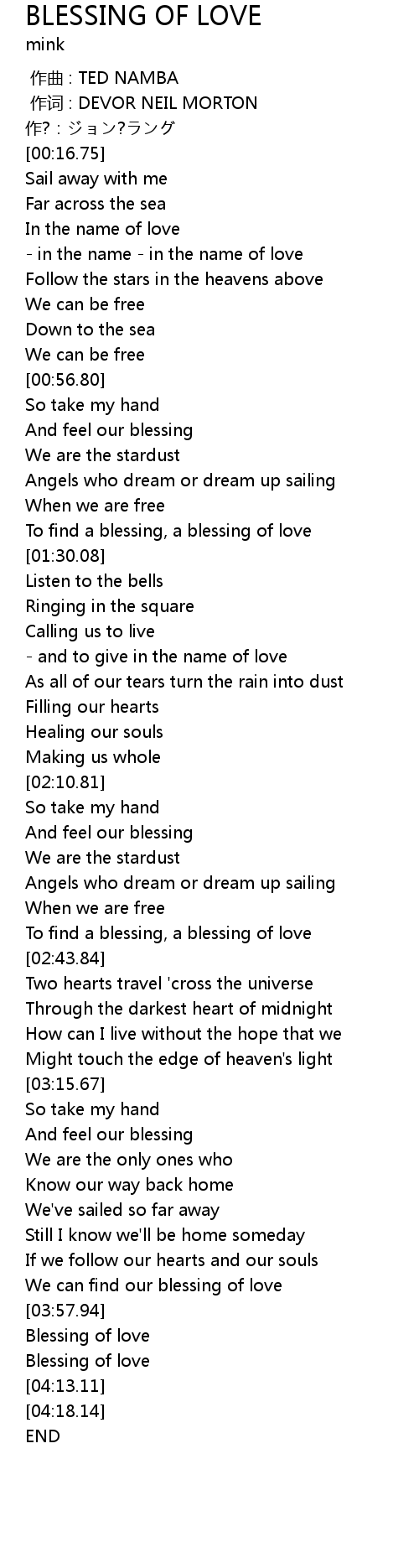 | [00:00.00] | zuò qǔ : TED NAMBA |