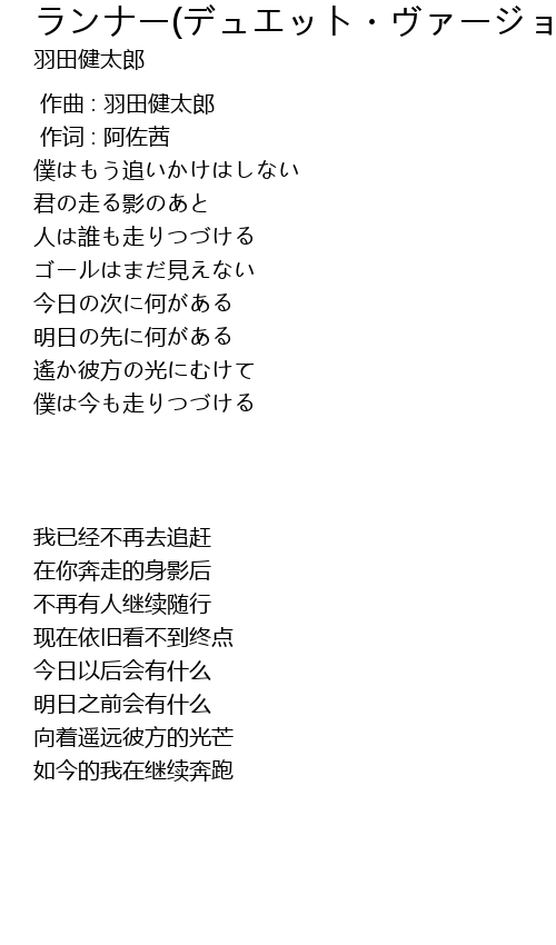 | 歌曲 | ランナー(デュエット・ヴァージョン) |