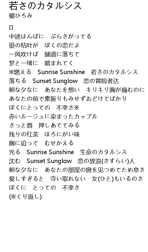 | ※燃える Sunrise Sunshine 若さのカタルシス | |