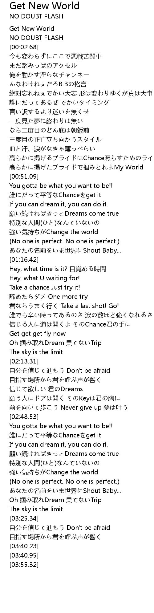 | [00:53.71] | 誰にだって平等なChanceをget it |