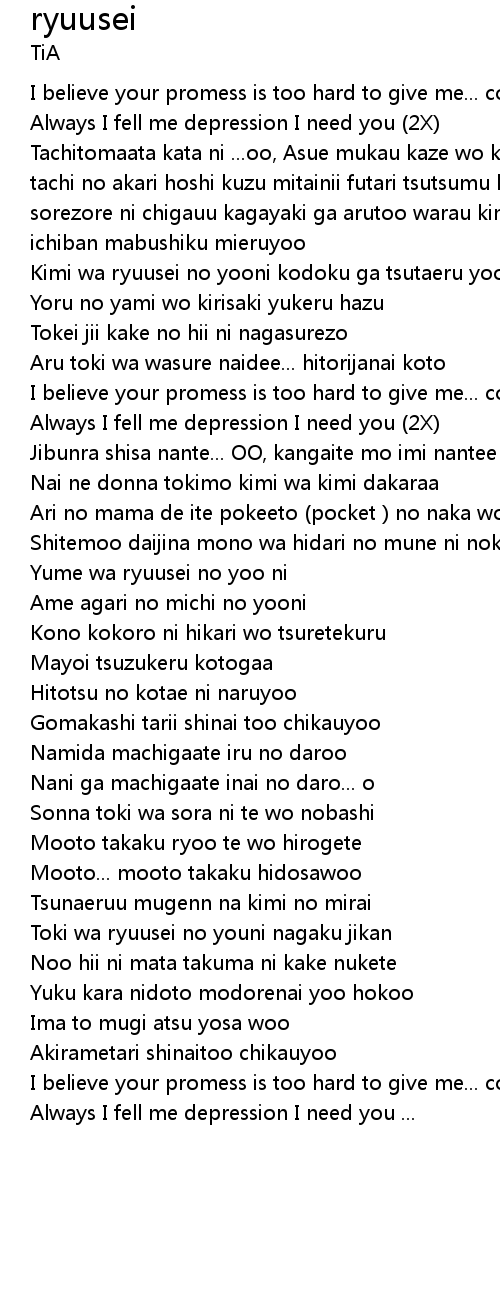 | tachi no akari hoshi kuzu mitainii futari tsutsumu kedoo | |