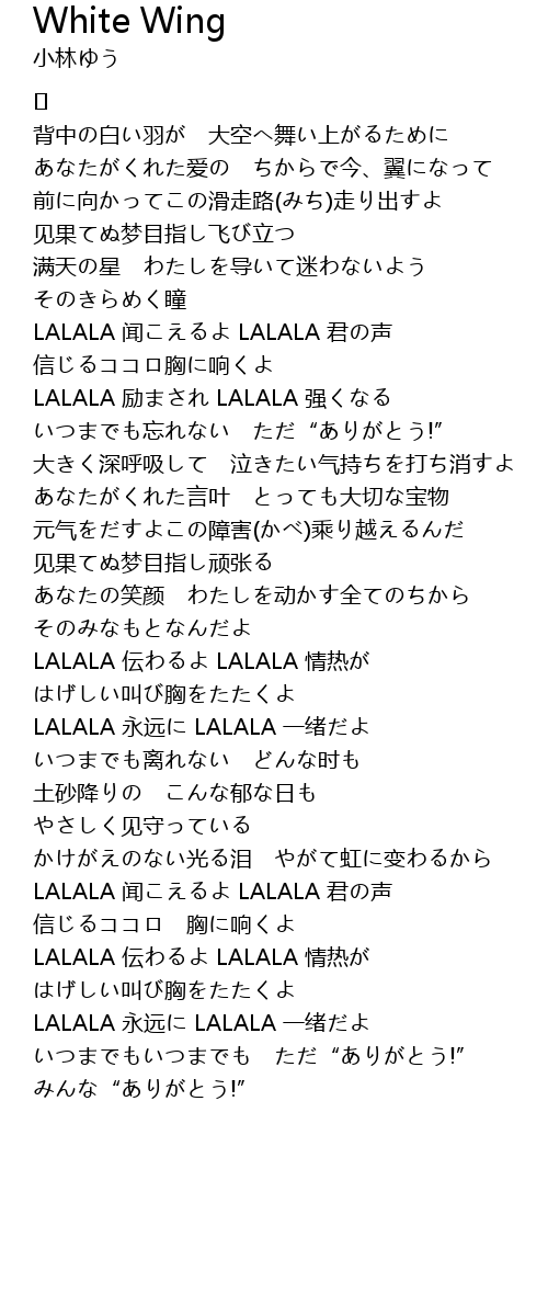 | 背中の白い羽が 大空へ舞い上がるために | |