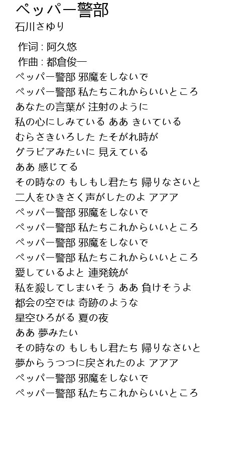 | [02:21.101] | ペッパー警部 邪魔をしないで |