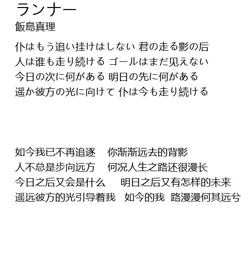 | [00:14.11] | 仆はもう追い挂けはしない 君の走る影の后 |