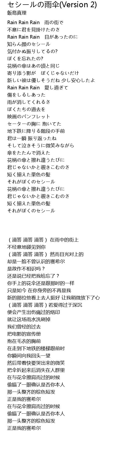 | 歌曲 | セシールの雨伞(Version 2) |