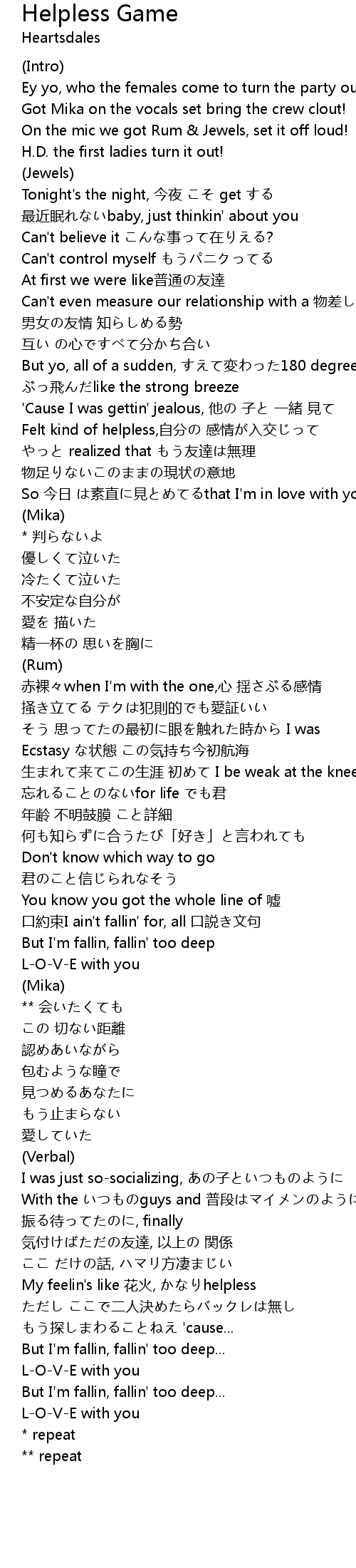 | 歌曲 | Helpless Game |