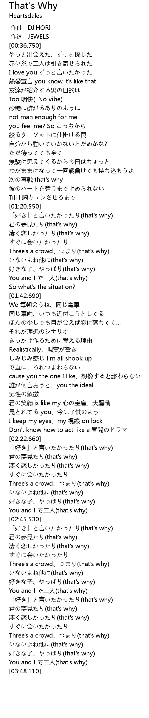 | [03:27.970] | 「好き」と言いたかったり(that's why) |