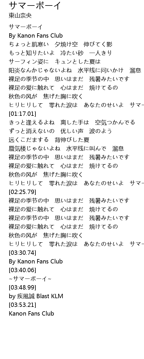 | [03:45.88] | ~サマーボーイ~ |