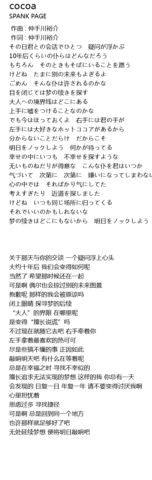 | 歌曲 | cocoa |