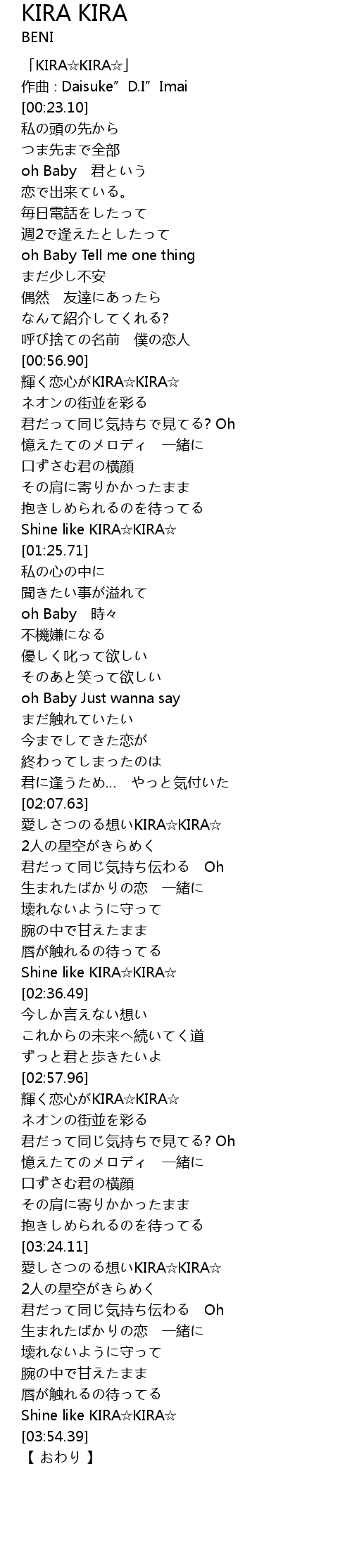 | [00:01.10] | 「KIRA☆KIRA☆」 |