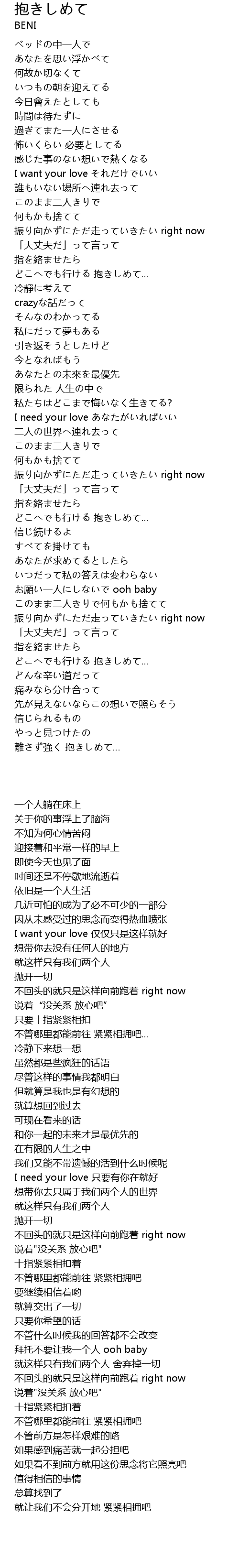 | 歌曲 | 抱きしめて |