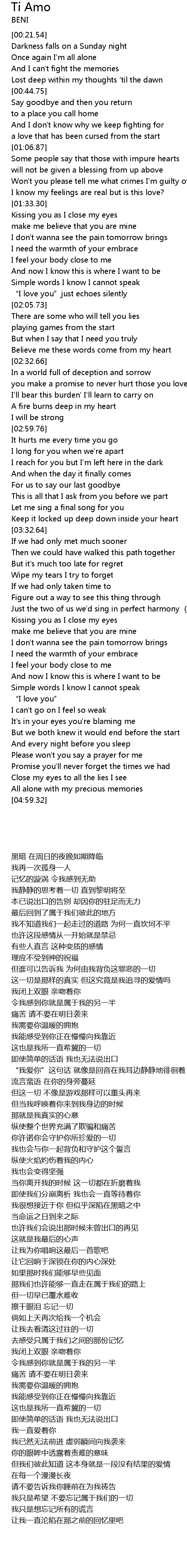 | [03:54.87] | Just the two of us we'd sing in perfect harmony (Ti Amo) |