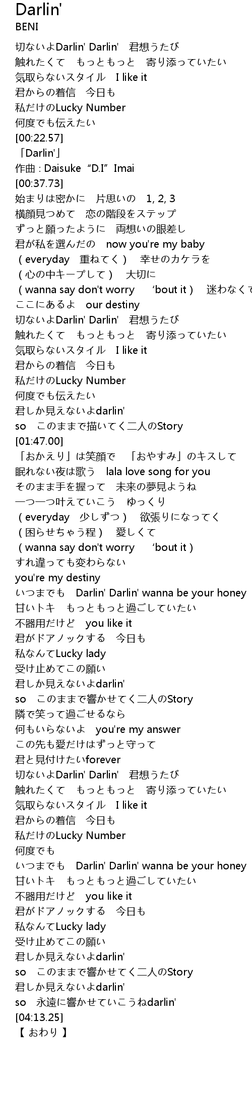 | [00:25.73] | 「Darlin'」 |