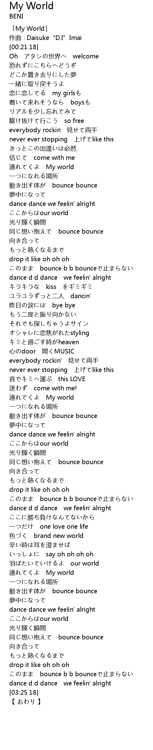 | [00:23.18] | Oh アタシの世界へ welcome |