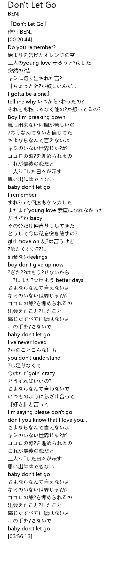 | [03:53.14] | baby don' t let go |
