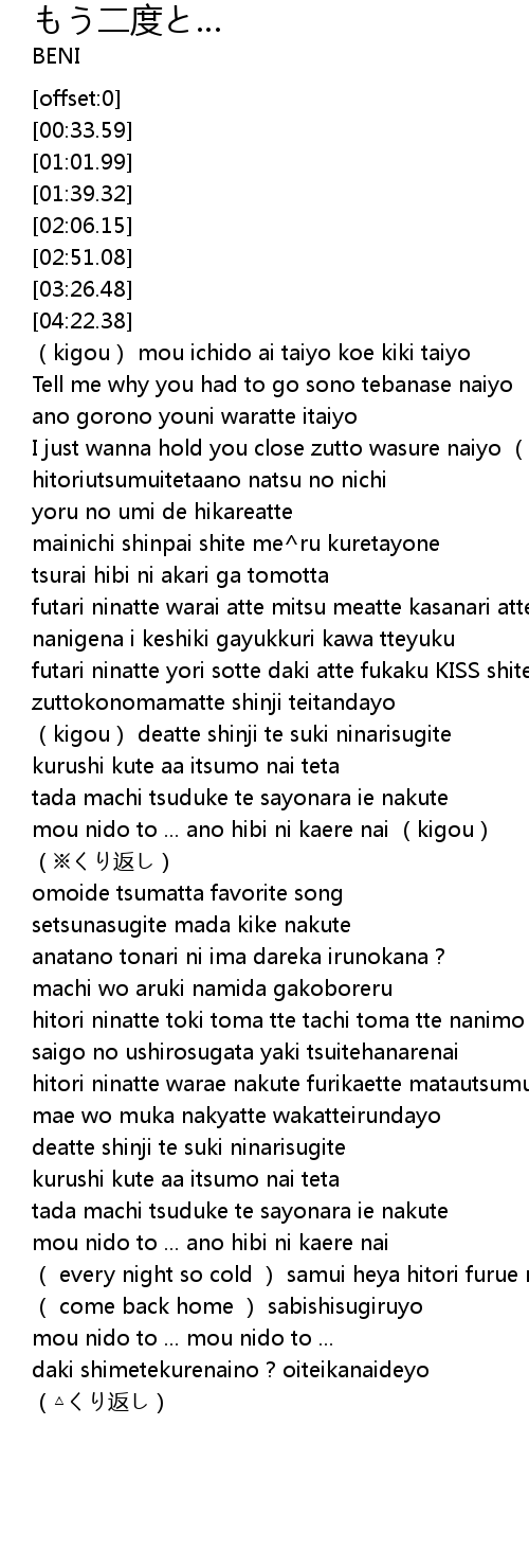 | [04:09.97] | mou nido to ... mou nido to ... |