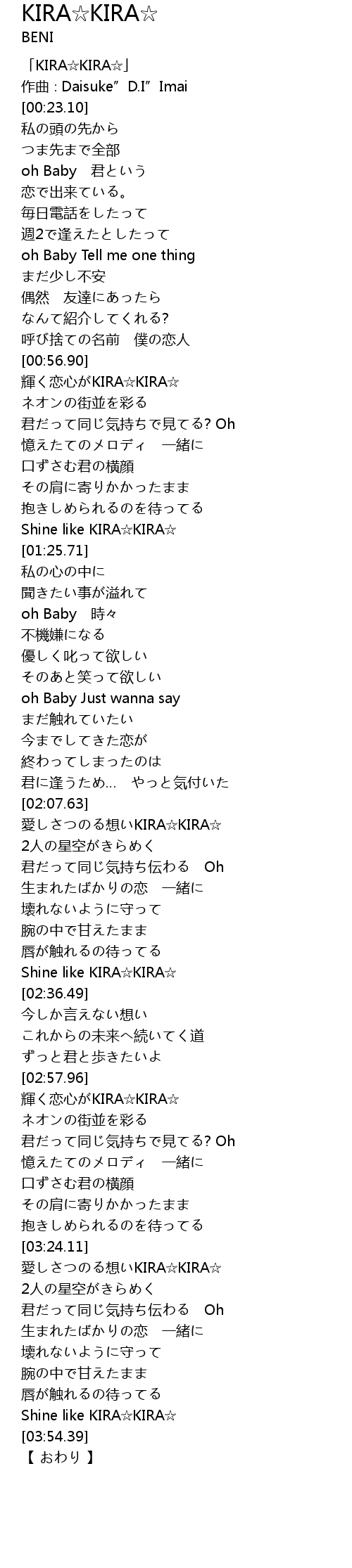 | [02:08.58] | 愛しさつのる想いKIRA☆KIRA☆ |