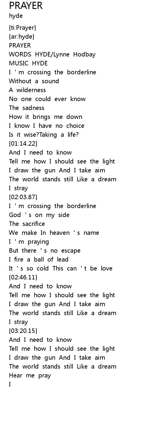 | [00:08.09] | WORDS HYDE/Lynne Hodbay |
