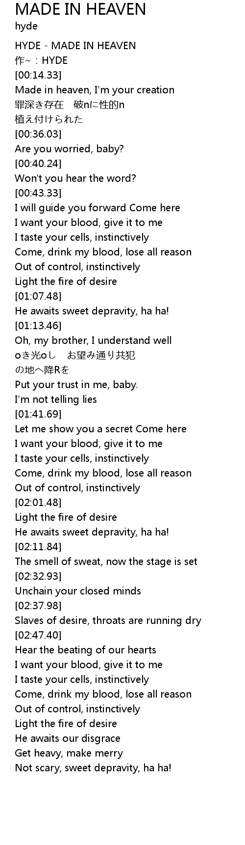 | [00:06.29] | HYDE MADE IN HEAVEN |