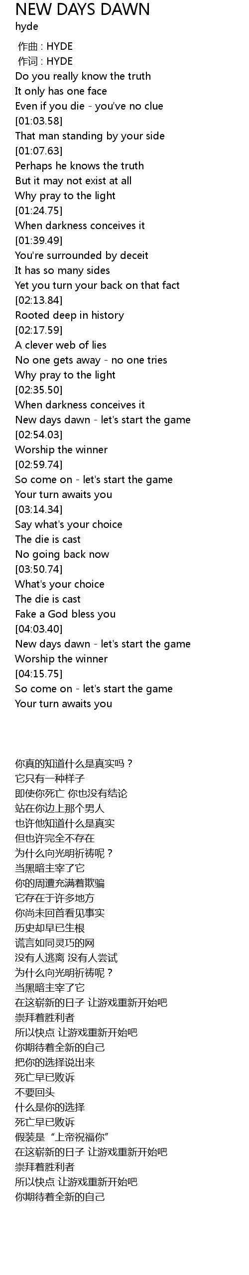 | [04:05.15] | New days dawn let' s start the game |