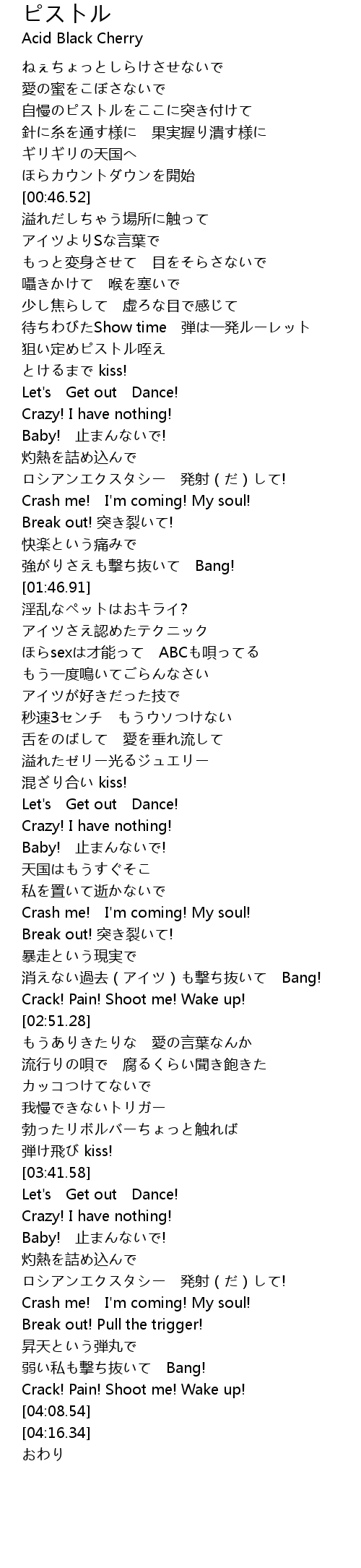 | [03:51.09] | ロシアンエクスタシー 発射(だ)して! |