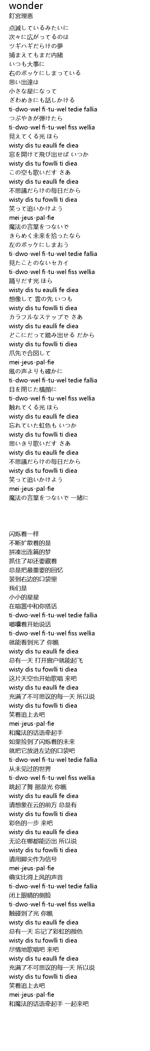 | 歌曲 | wonder |