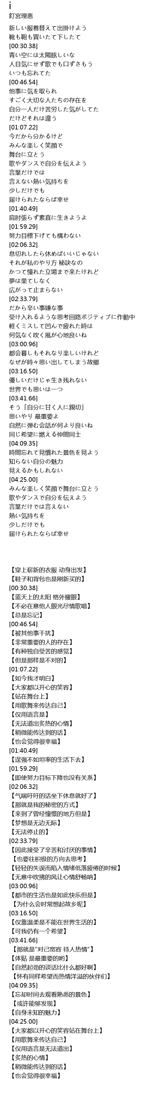 | [04:37.86] | みんな楽しく笑顔で舞台に立とう |