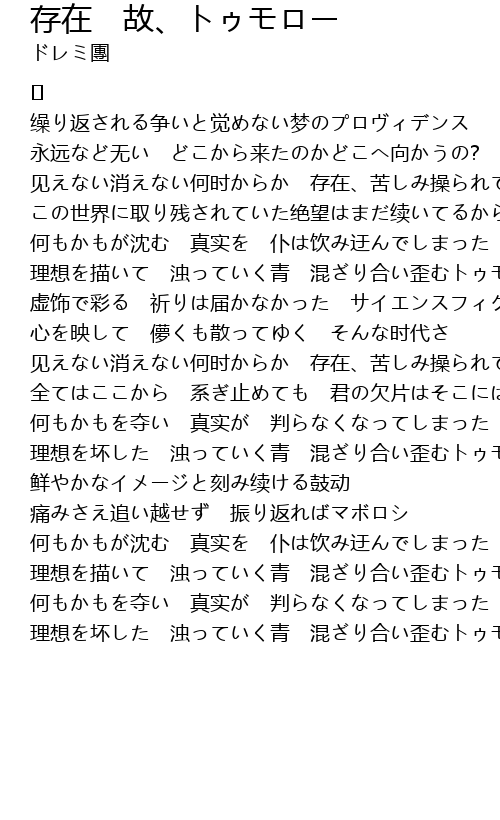 | 理想を坏した 浊っていく青 混ざり合い歪むトゥモロー |