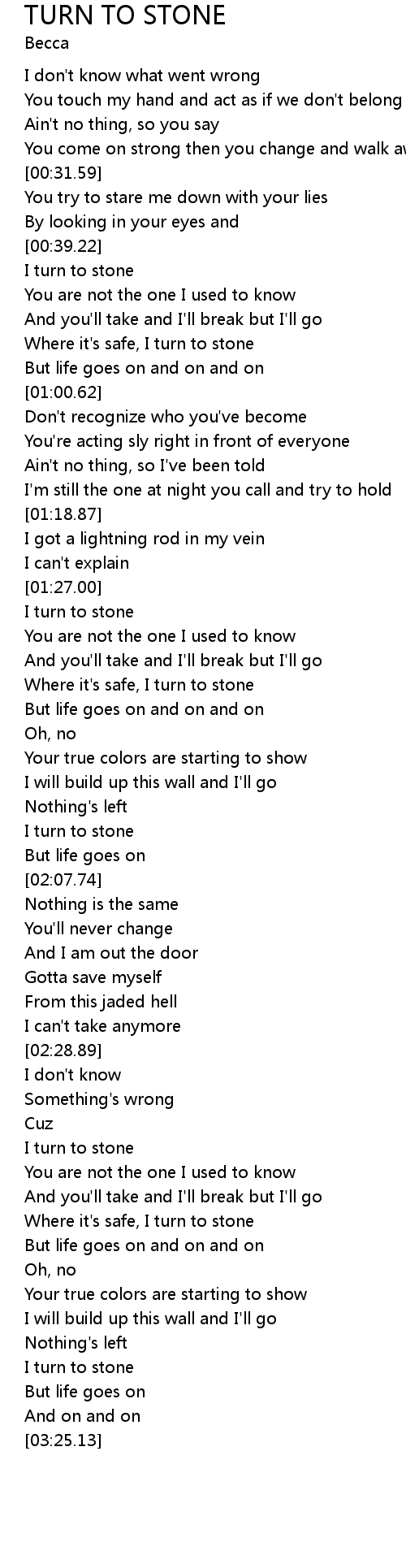 | [03:07.93] | I turn to stone |