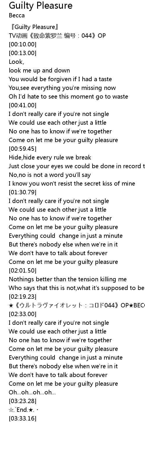 | [02:45.39] | Come on let me be your guilty pleasure |