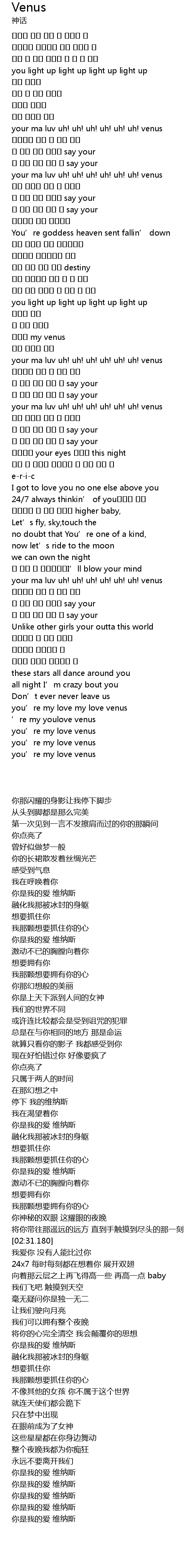 | [02:01.330] | your ma luv uh! uh! uh! uh! uh! uh! venus |