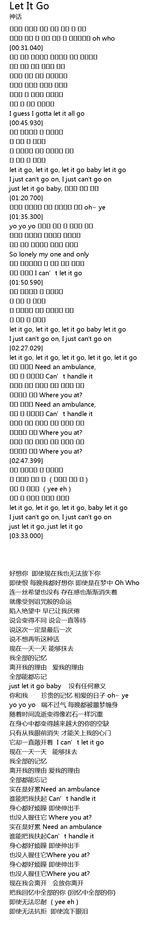 | [02:27.200] | let it go, let it go, let it go, let it go, let it go |
