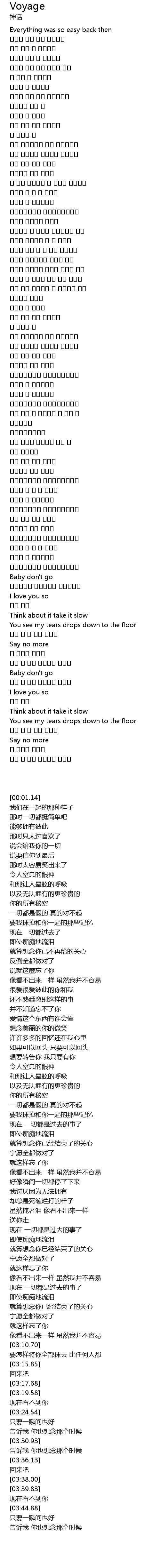 | [03:10.70] | Baby don' t go |