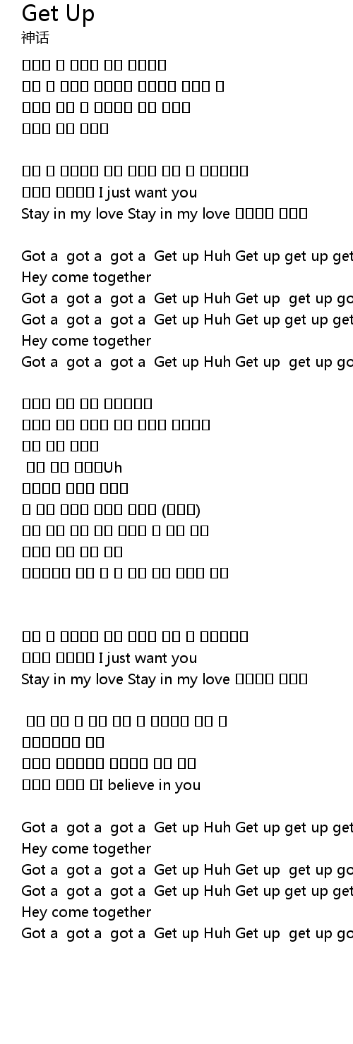 | Got a got a got a Get up Huh Get up get up got a got a got a get up |