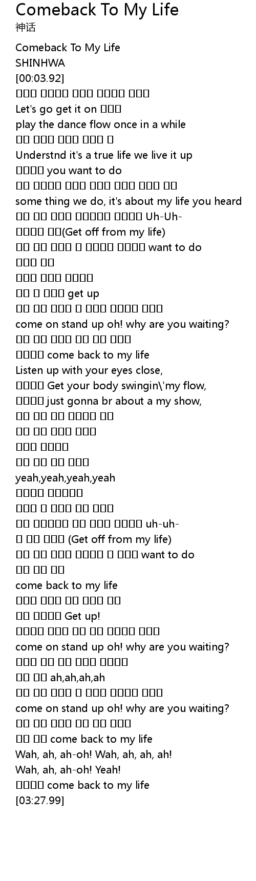| [03:22.41] | 우리이제 come back to my life |