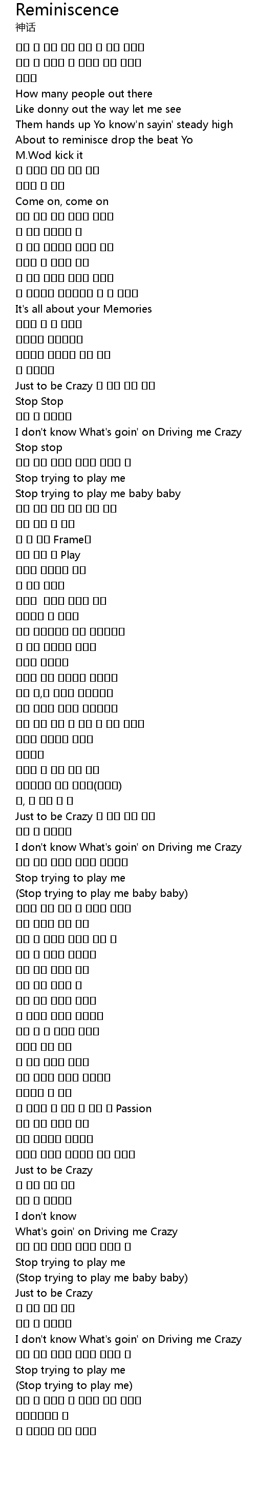 | [02:18.54] | I don't know What's goin' on Driving me Crazy |