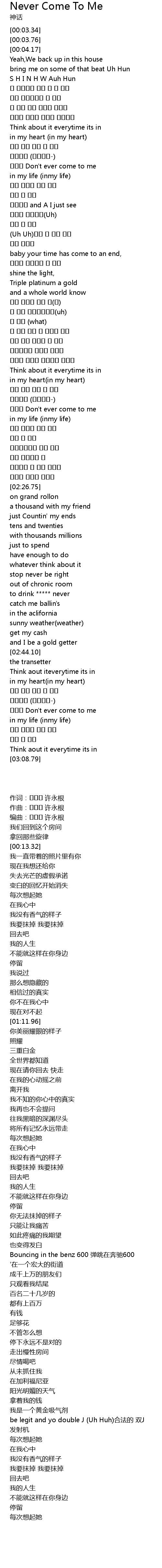 | [00:09.22] | bring me on some of that beat Uh Hun |