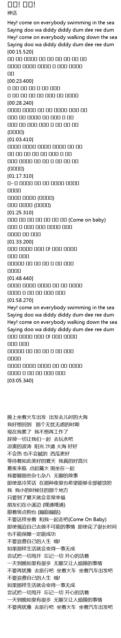 | [02:24.920] | Hey! come on everybody swimming in the sea |