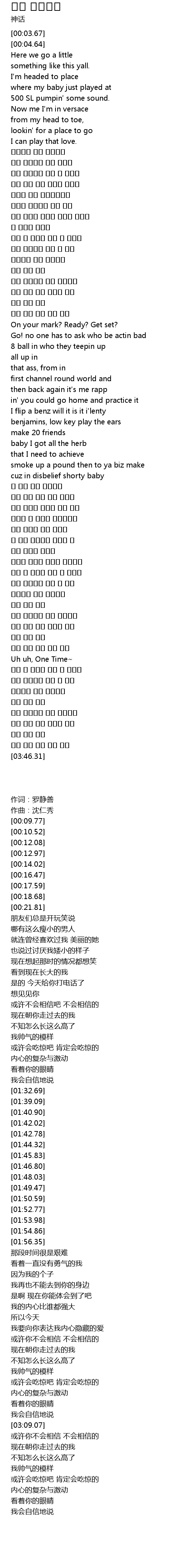 | [03:09.07] | Uh uh, One Time~ |