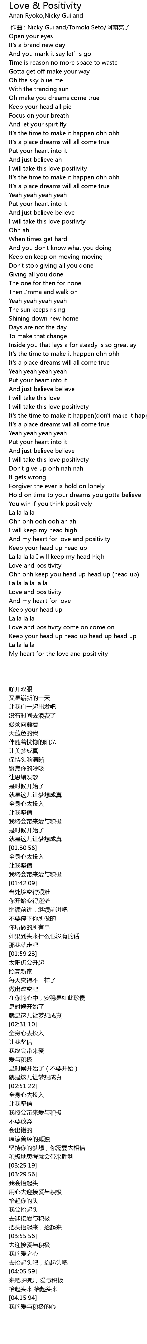 | [03:37.64] | And my heart for love and positivity |