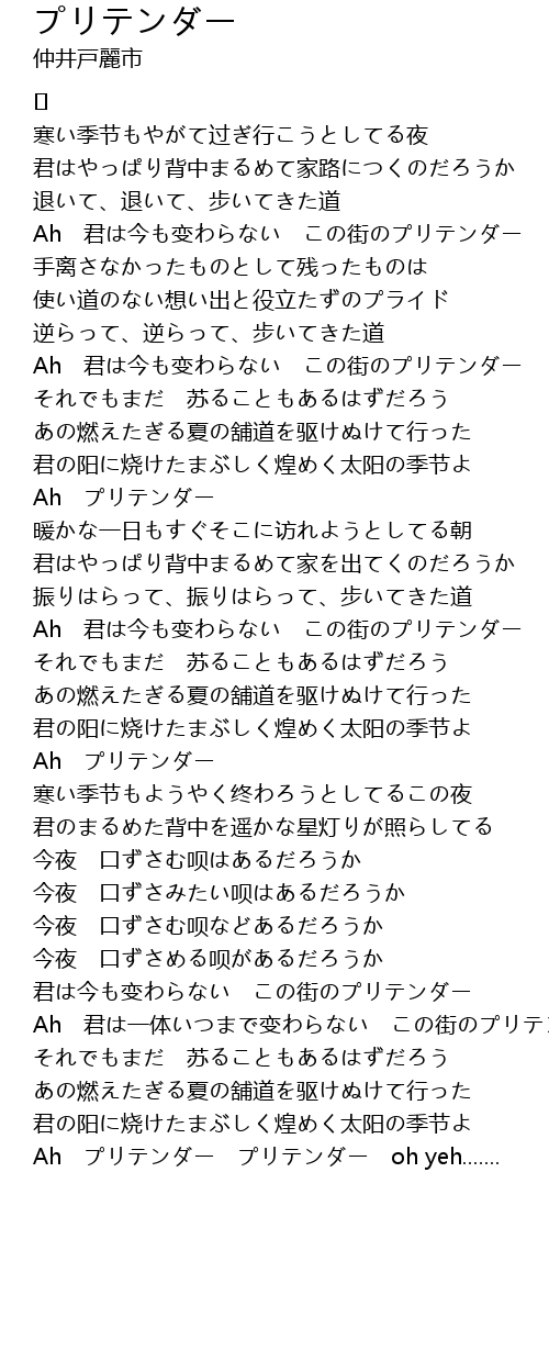 | Ah 君は一体いつまで变わらない この街のプリテンダー | |