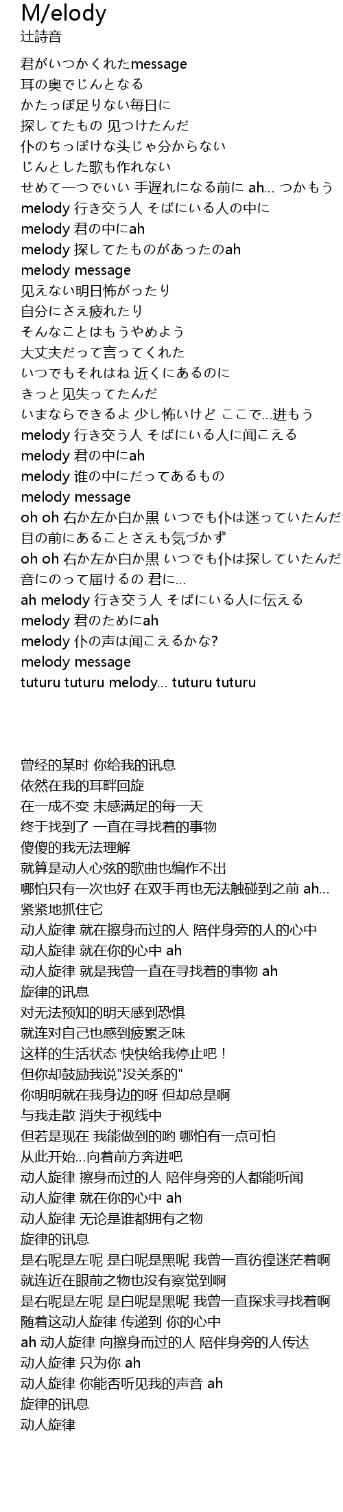 | [02:11.750] | melody 行き交う人 そばにいる人に闻こえる |