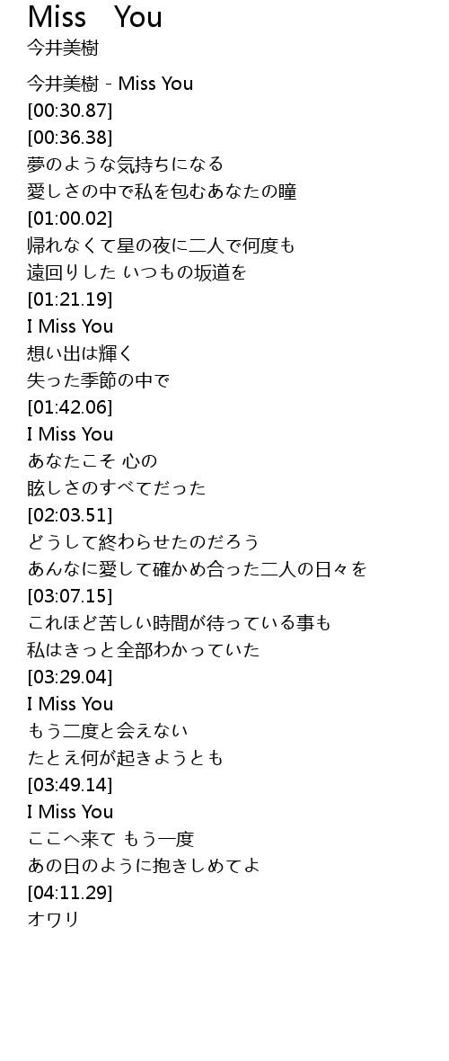 | [00:10.86] | jīn jǐng měi shù Miss You |