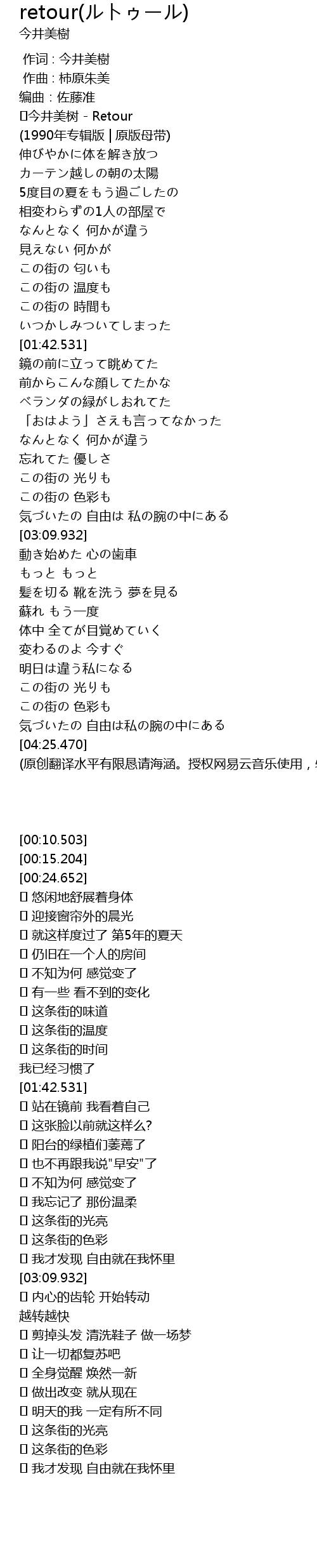 | [00:15.204] | ♪今井美树 - Retour |