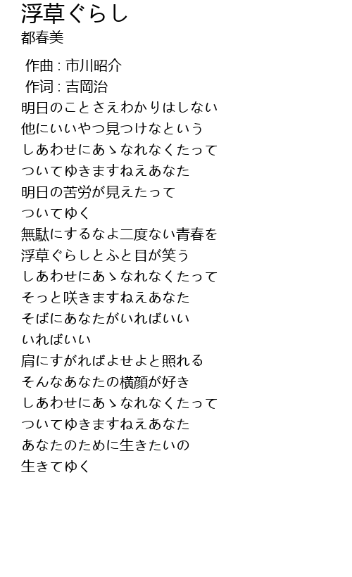 | [01:38.680] | 浮草ぐらしとふと目が笑う |