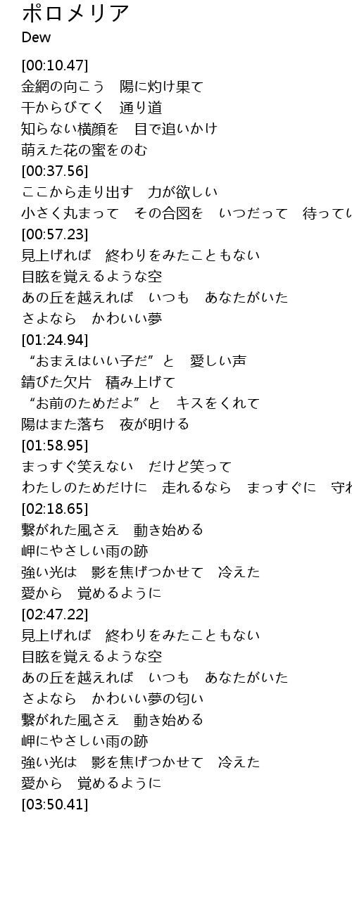 | [03:16.71] | さよなら かわいい夢の匂い |