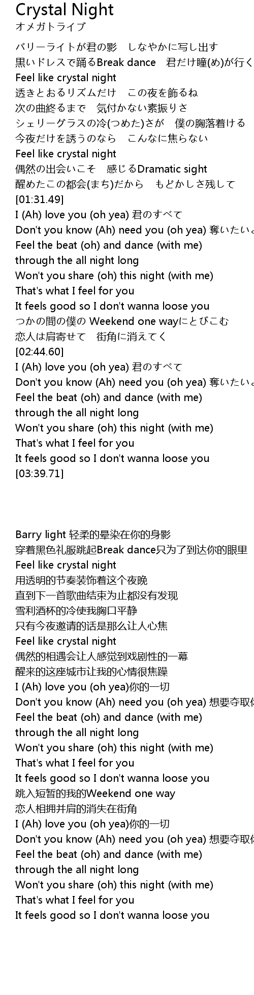 | [02:09.52] | Won't you share (oh) this night (with me) |