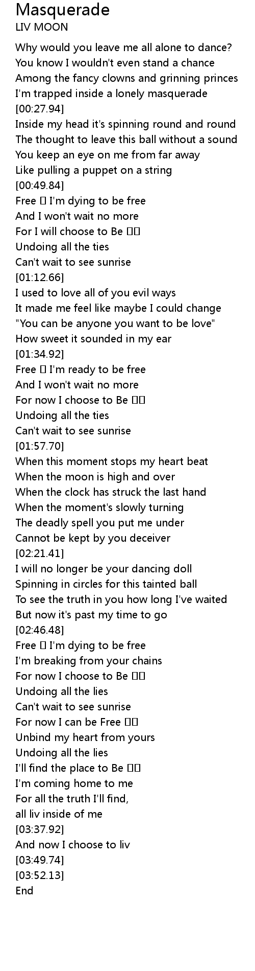 | [00:22.73] | I' m trapped inside a lonely masquerade |