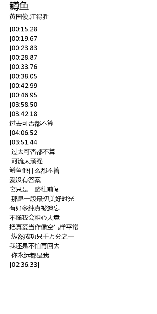 | [04:00.64][03:42.18][02:10.14][01:51.50][00:53.71] | ai ren hao nan guo qu ke fou dou bu suan |